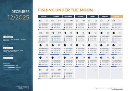 The daily index assigns every day a catch probability rate according to the phases of the moon.